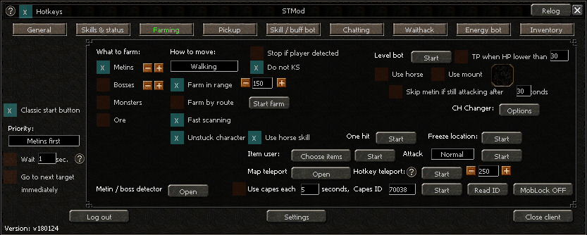 * Priority -> Select which category of entities the bot should prioriteze (metins first / bosses first)