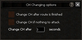 <figure><img src="https://1662484209-files.gitbook.io/~/files/v0/b/gitbook-x-prod.appspot.com/o/spaces%2FSrVu0j9CYXbvJXRYgHnk%2Fuploads%2FzpdE3NYLo6h5j2j5Ull3%2FScreenshot_181.png?alt=media&#x26;token=35405e92-3f1d-457d-88dd-a2e2f7b67efc" alt=""><figcaption><p><strong><code>Change CH after route is finished -> The bot will change current channel to next channel if the completed the route and nothing found Change CH if nothing to attack -> The bot will change current channel to next channel if there's nothing to attack Relog if nothing to attack -> The bot will relog your character if there's nothing to attack</code></strong></p></figcaption></figure>