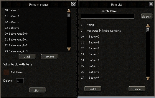 * Sell items from slot x to slot y -> The bot will sell all items from the specified range.